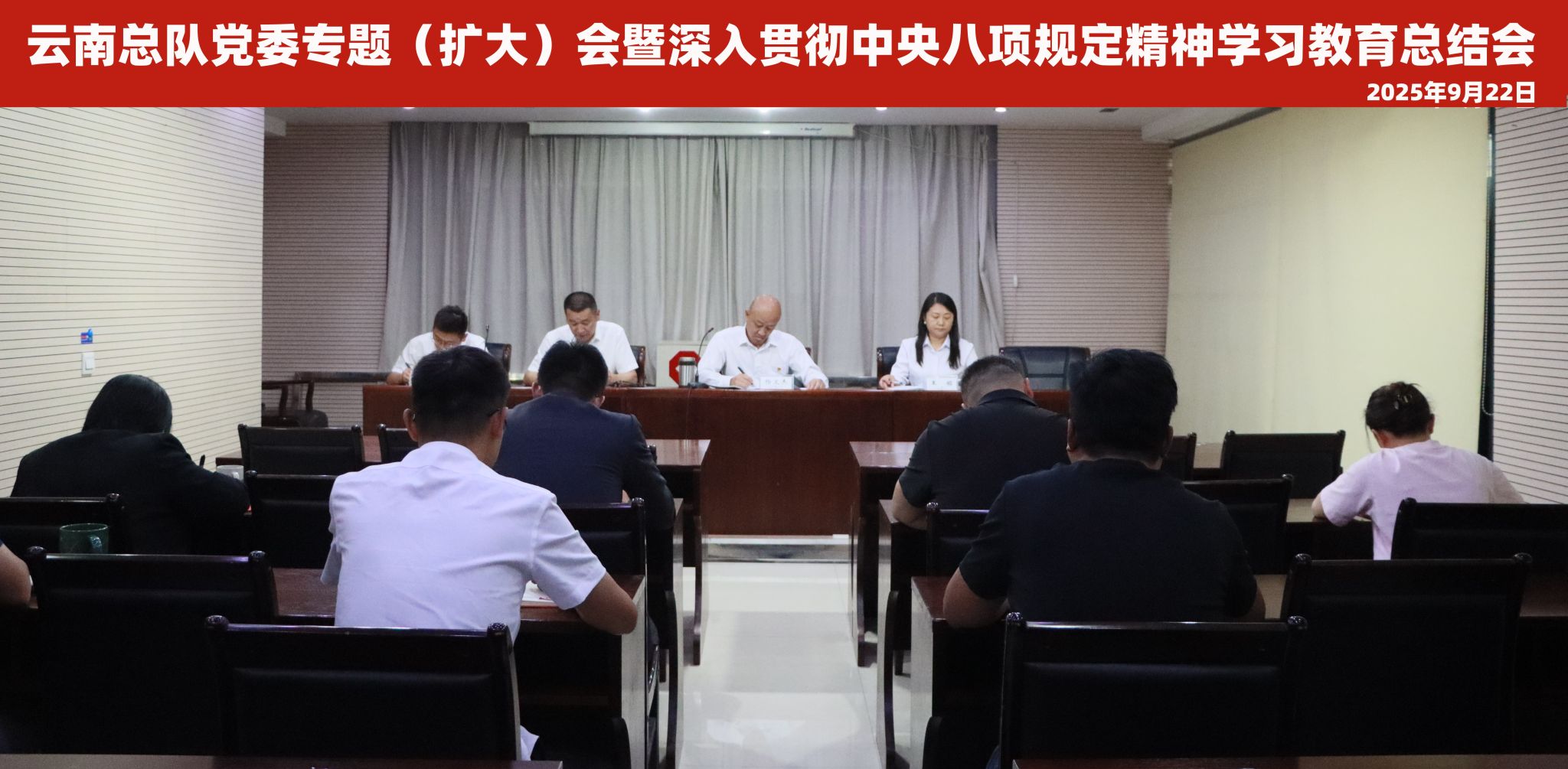 9月22日,云南总队召开党委专题(扩大)会暨深入贯彻中央八项规定精神学习教育总结会,传达学习习近平总书记关于深入贯彻中央八项规定精神学习教育的重要指示精神、中央党的建设工作领导小组会议精神和国务院国资委党委扩大会议暨党建工作领导小组会议精神,立足云南总队学习教育取得的成效与经验,对下一步巩固拓展成果、推动作风建设常态化长效化的工作重点进行了谋划与部署。党委书记、总队长杨文杰主持会议并讲话,党委副书记、...